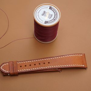 Dây đồng hồ Handmade da Pupelo màu nâu, khâu chỉ kem DL010