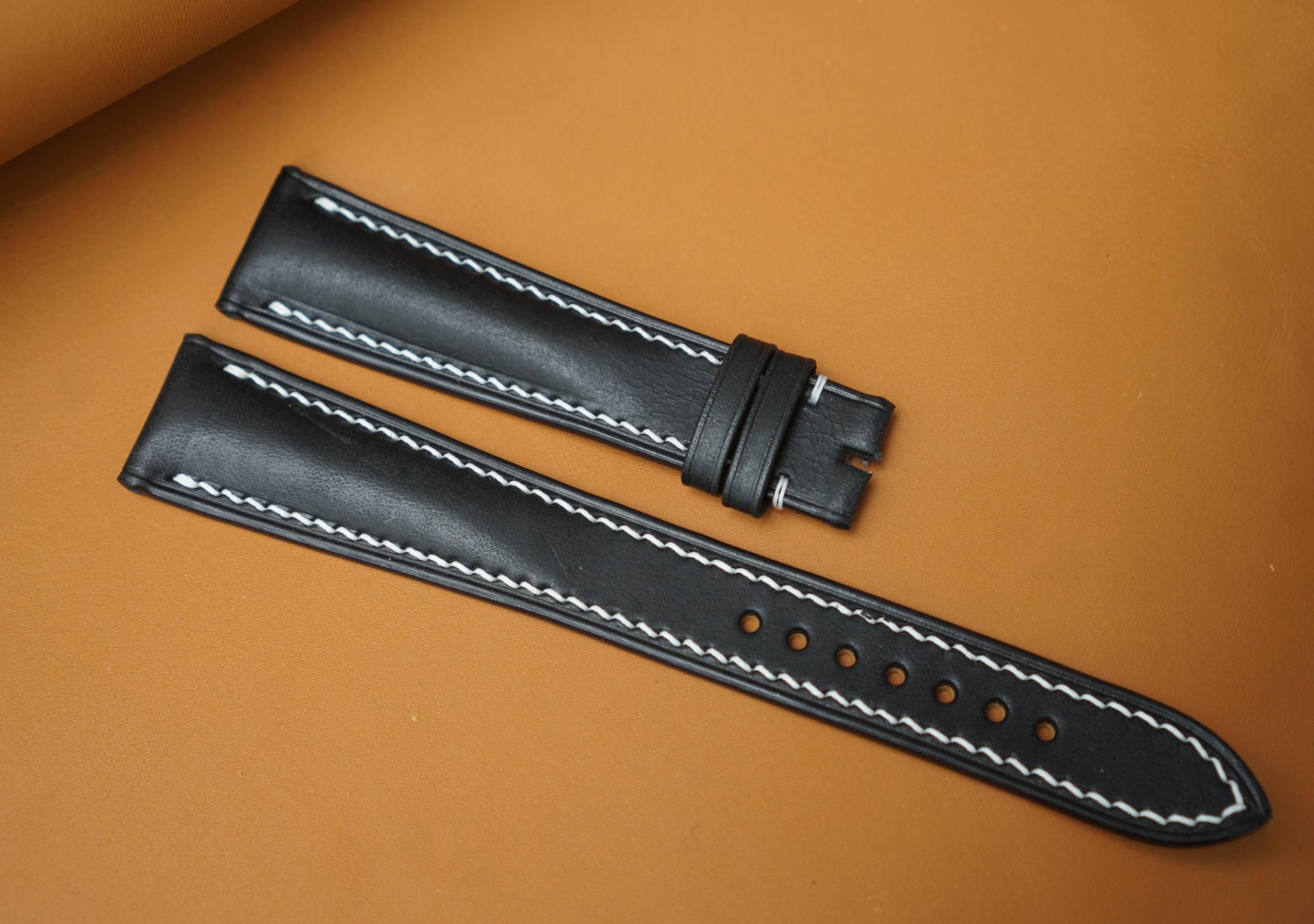 Hãy là người đầu tiên nhận xét “Dây đồng hồ Handmade da buttero màu đen, khâu chỉ trắng BT005”