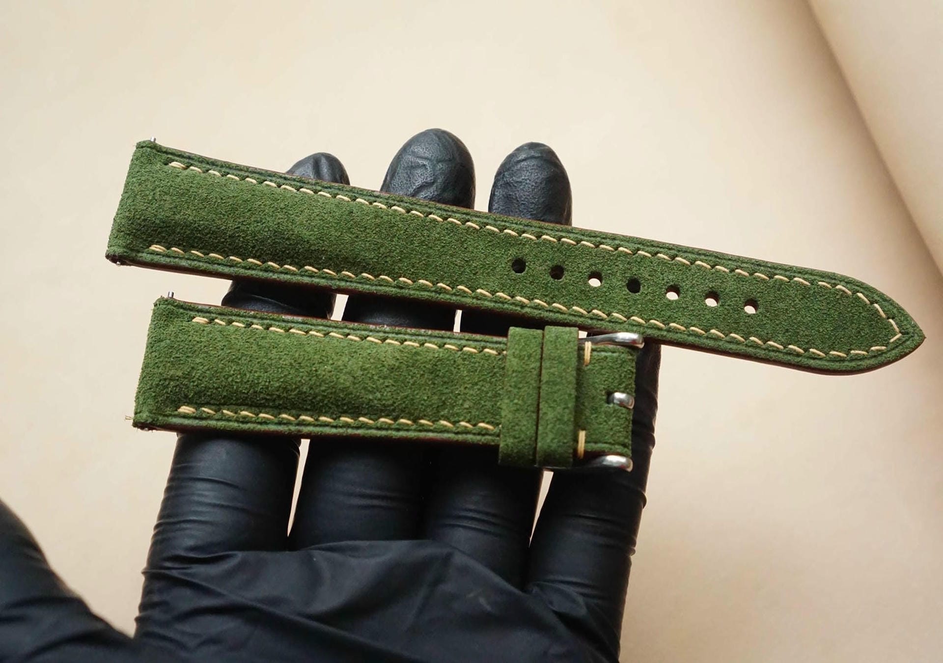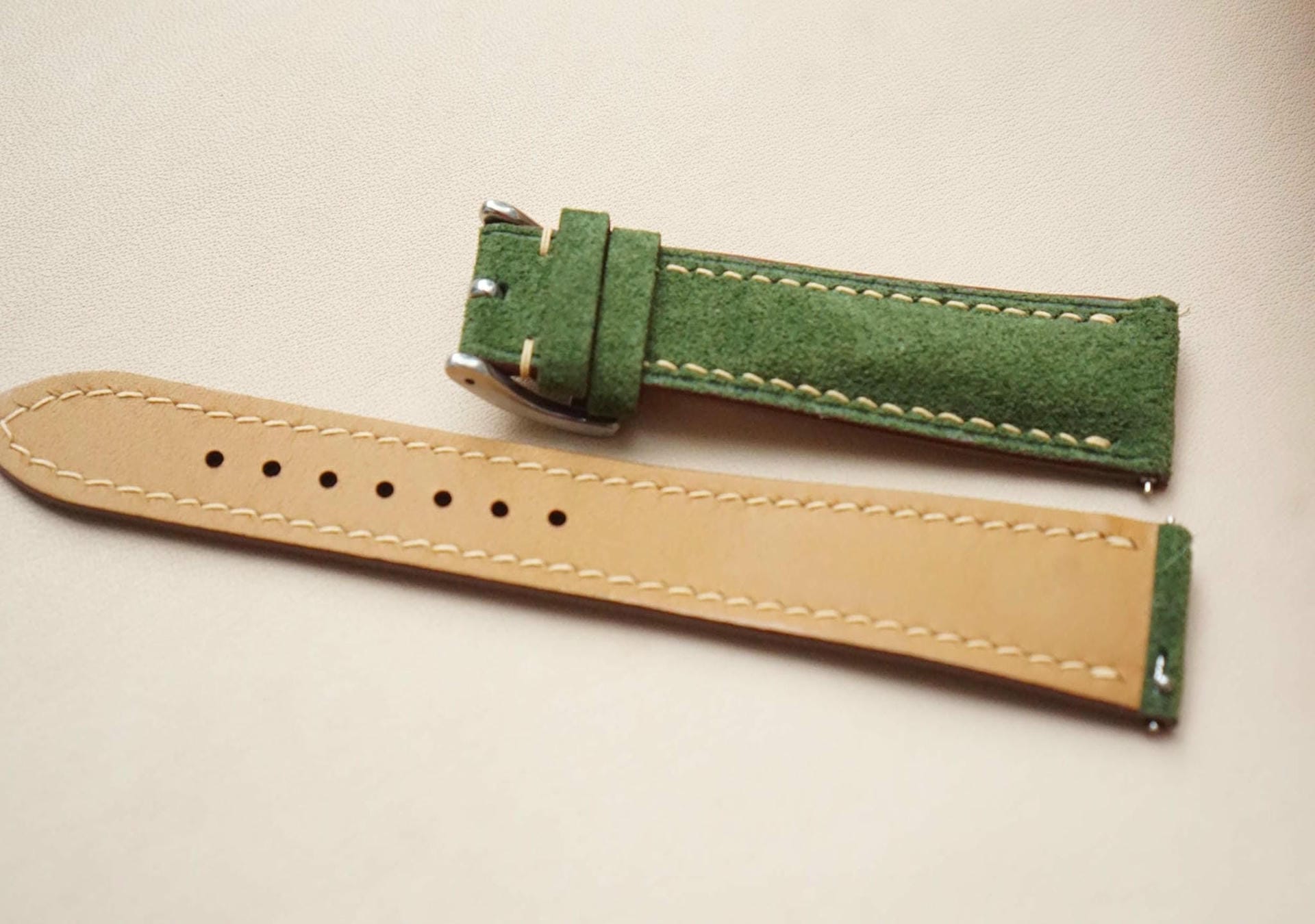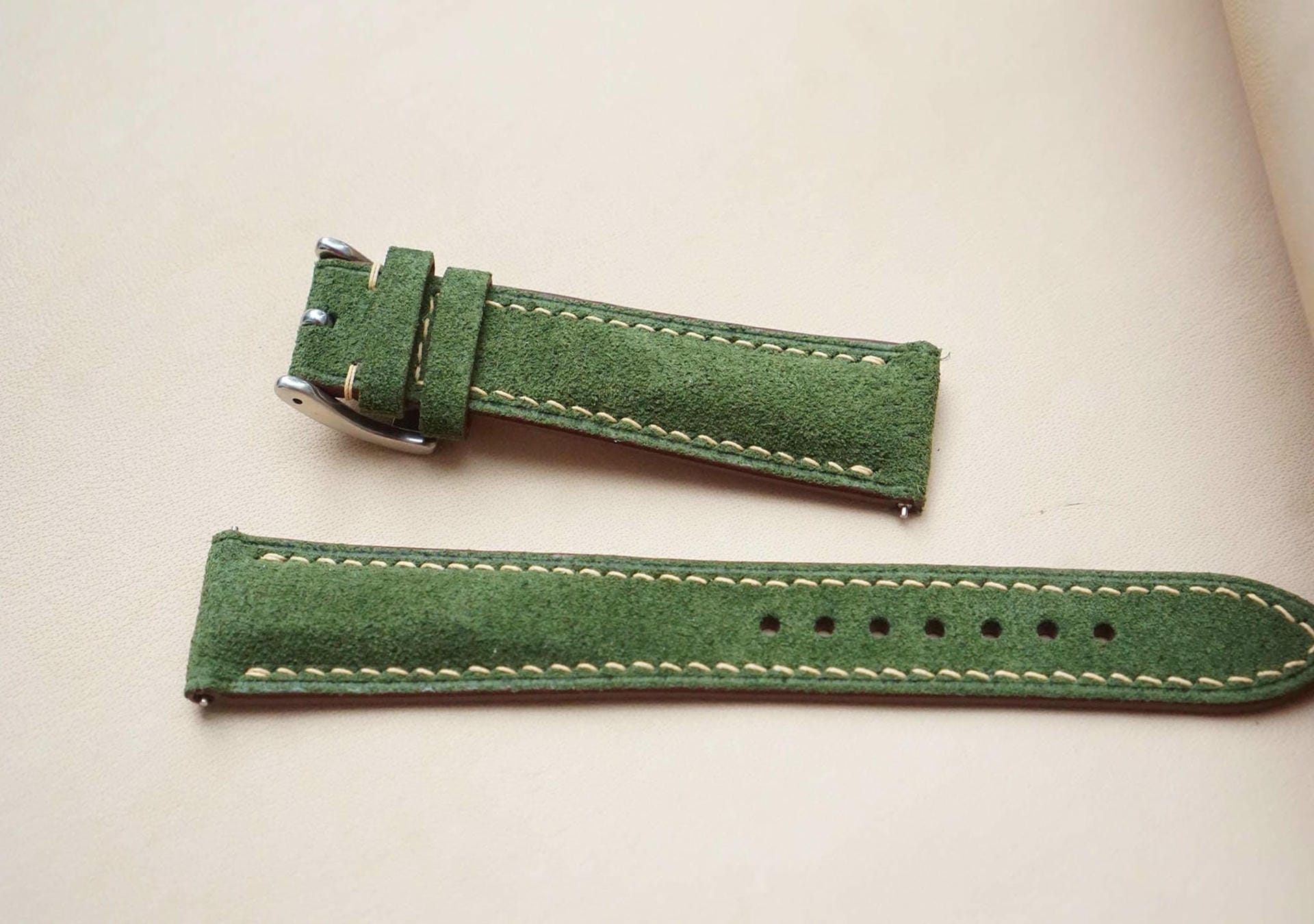 Dây đồng hồ Handmade da lộn Ý Nhập khẩu màu xanh lá DL001