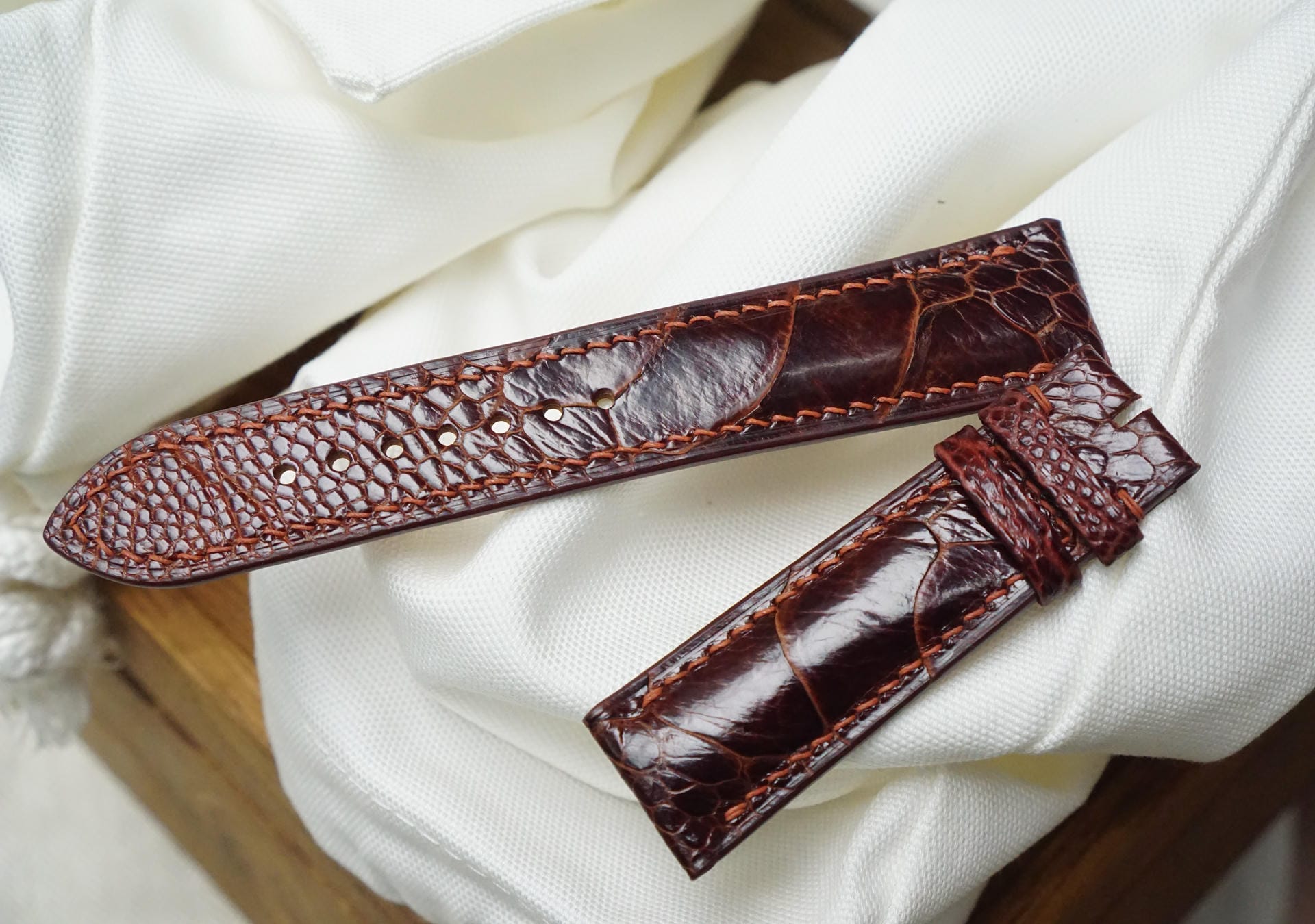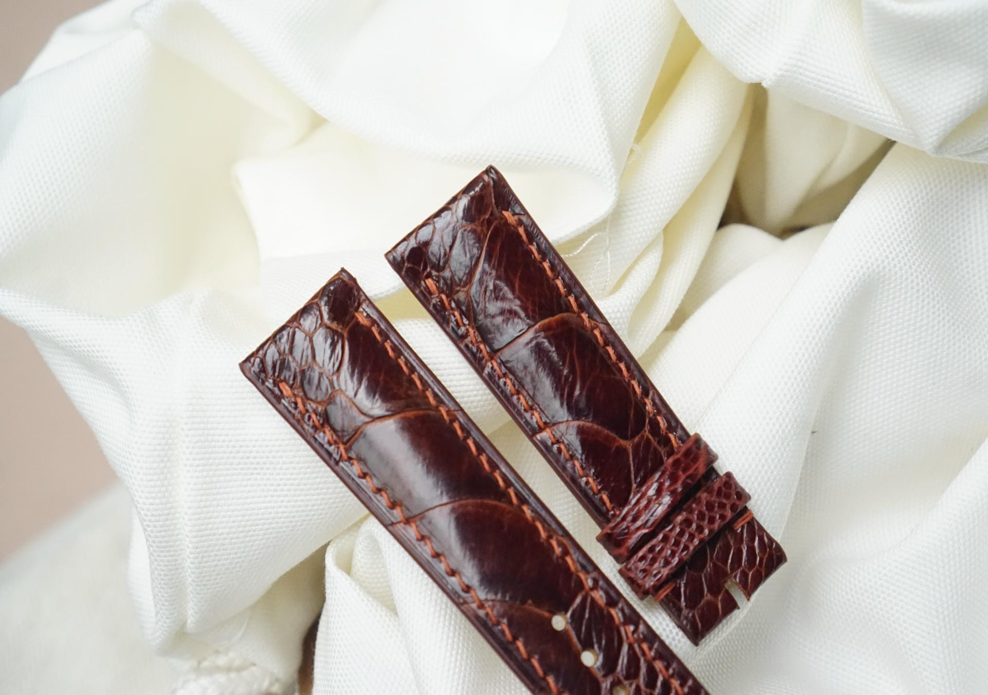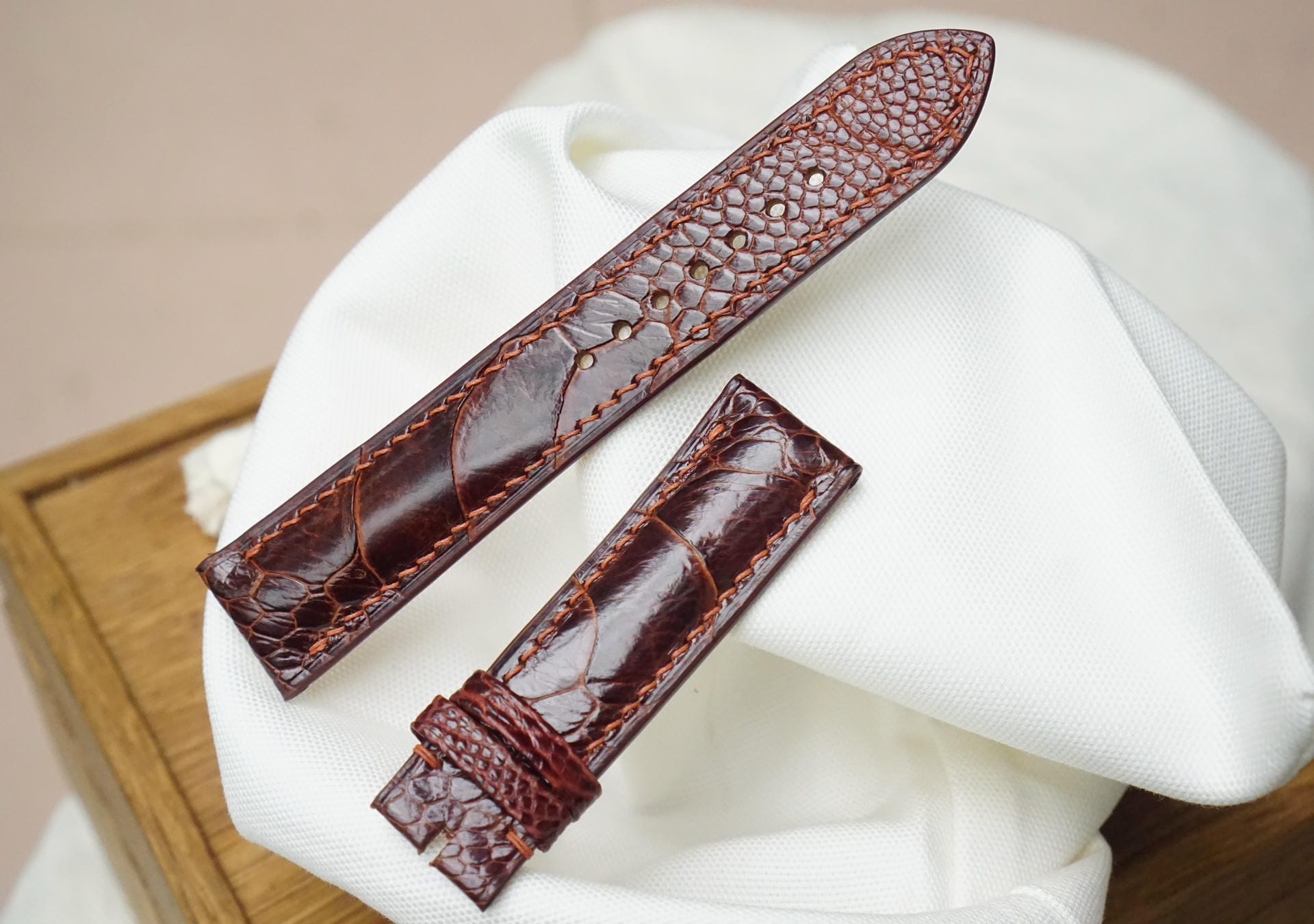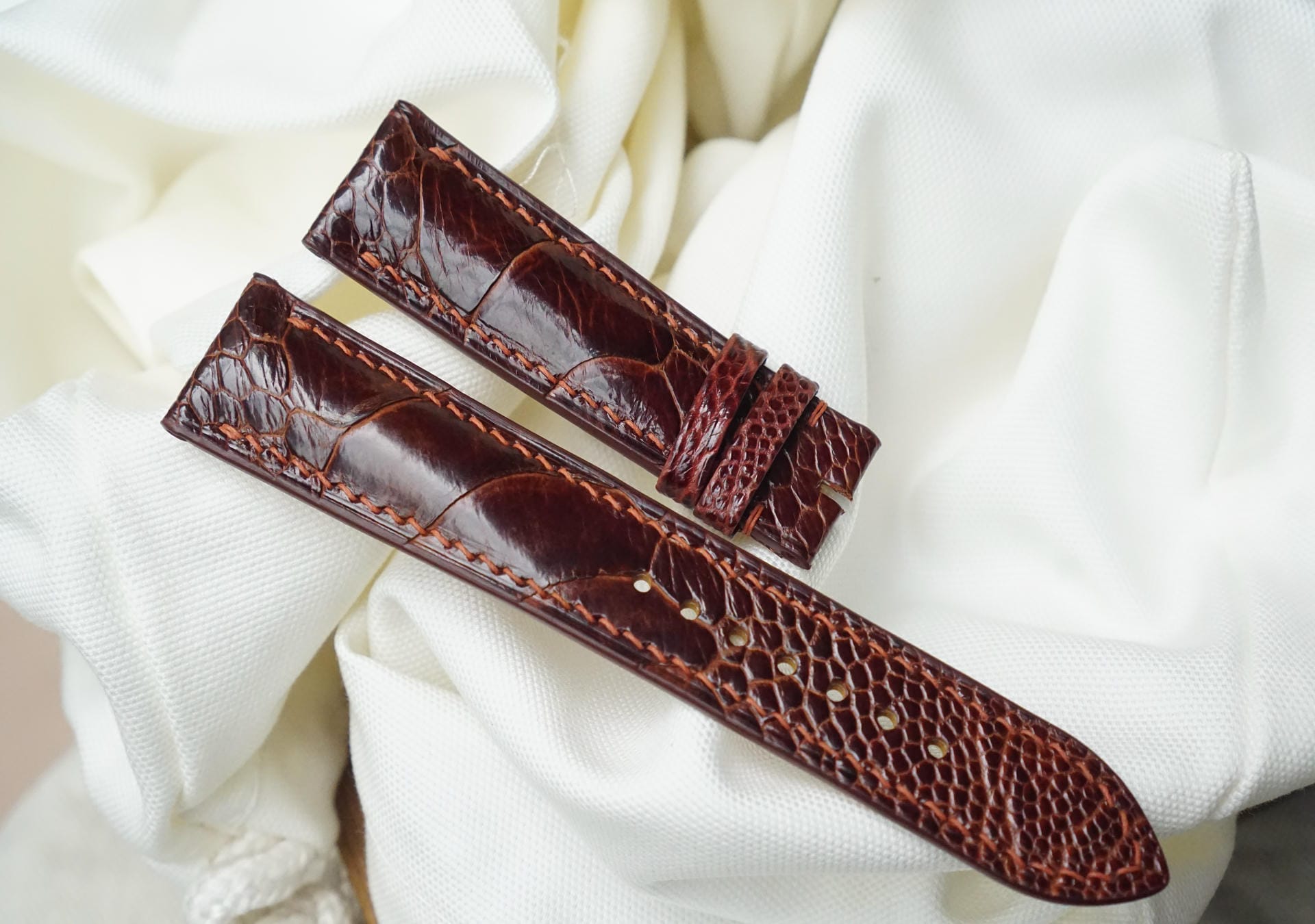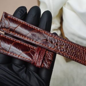 Hãy là người đầu tiên nhận xét “Dây đồng hồ Handmade da đà điểu Khatoco vảy chéo màu nâu đỏ DD4673”