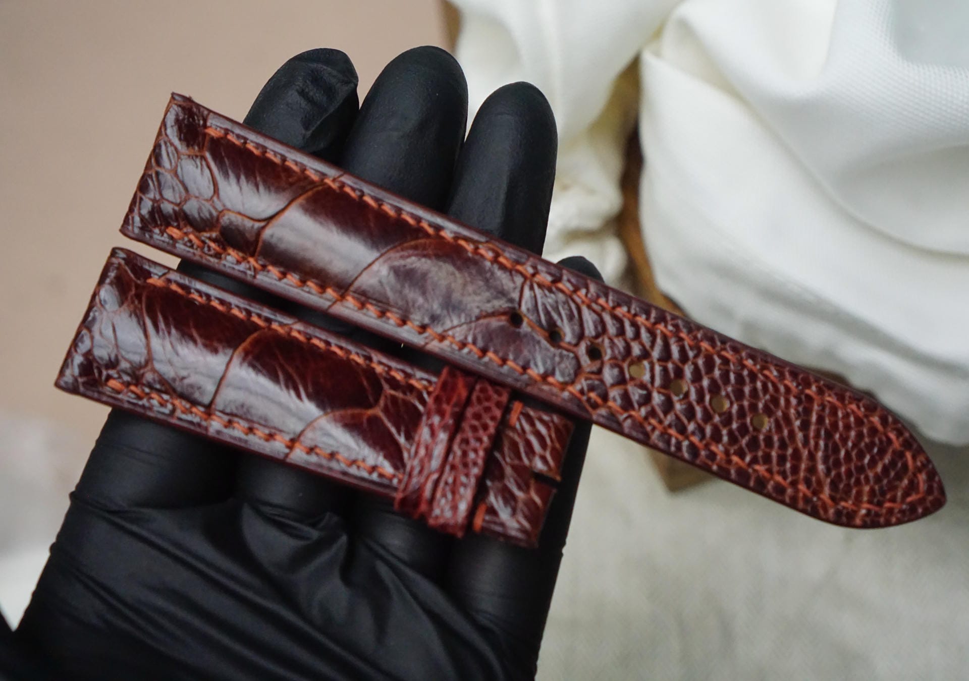 Dây đồng hồ thủ công tại Tavos được làm từ chất liệu da đà điểu Khatoco cao cấp với độ hoàn thiện tinh xảo dưới bàn tay của những nghệ nhân.