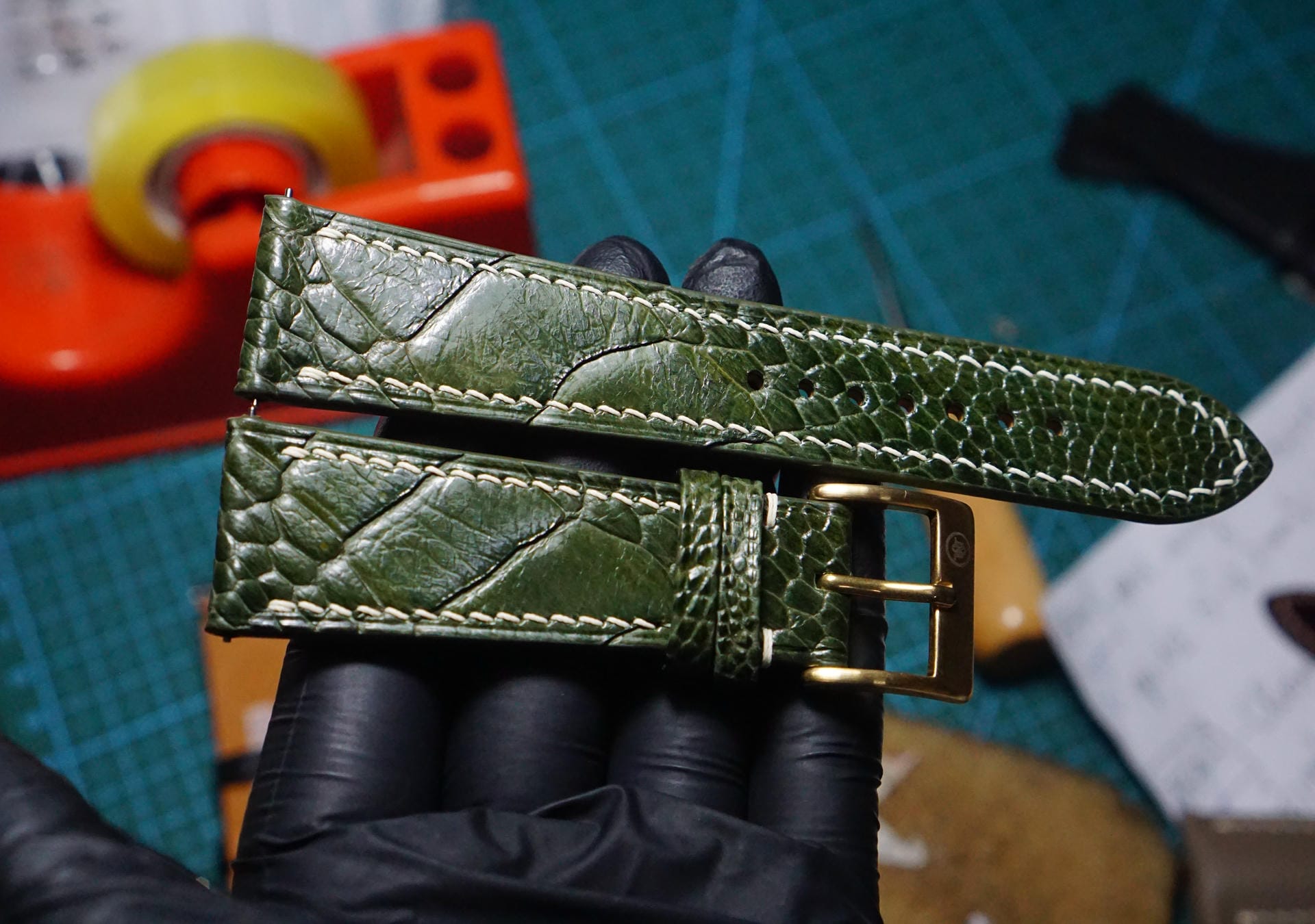 Dây đồng hồ thủ công tại Tavos được làm từ chất liệu da đà điểu Khatoco cao cấp với độ hoàn thiện tinh xảo dưới bàn tay của những nghệ nhân.