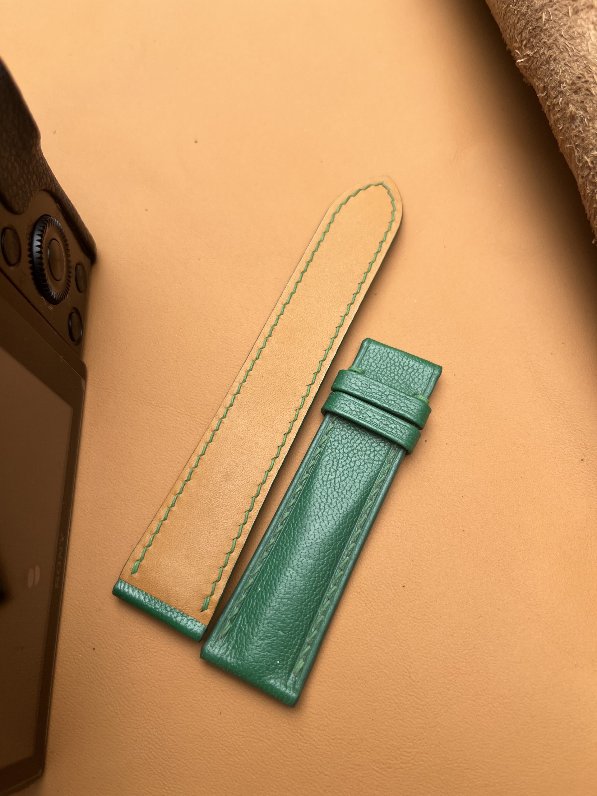 Dây đồng hồ Handmade da Dê Alran màu xanh lá nhập khẩu cao cấp AL003