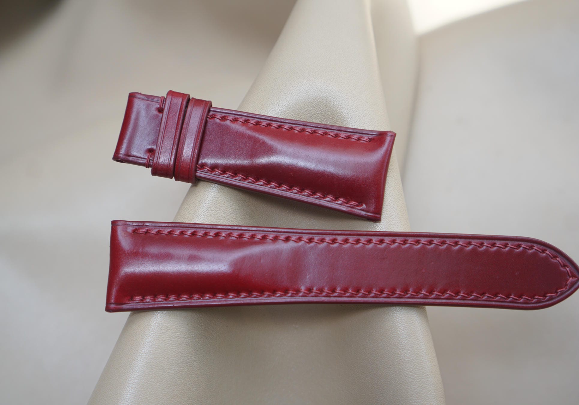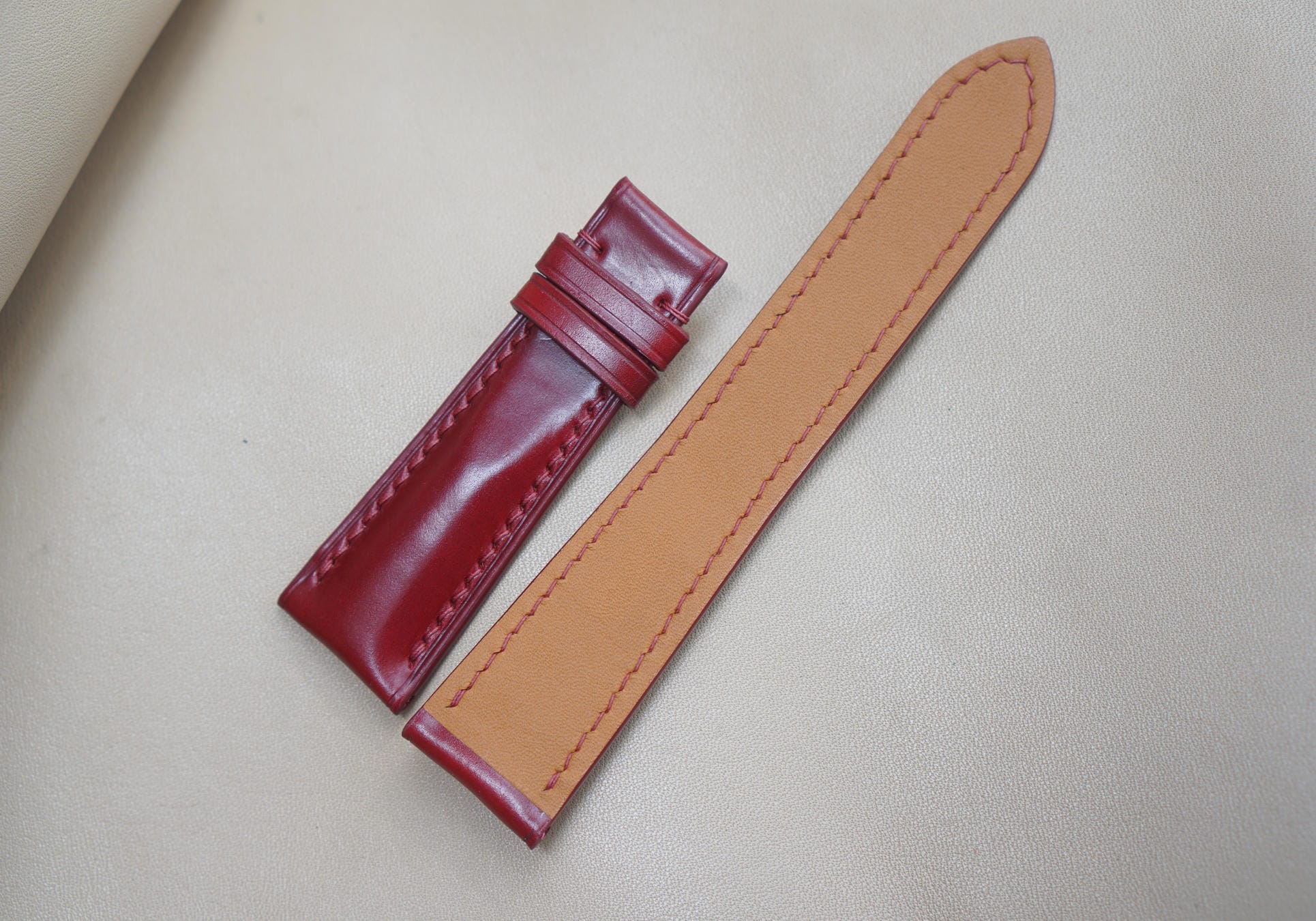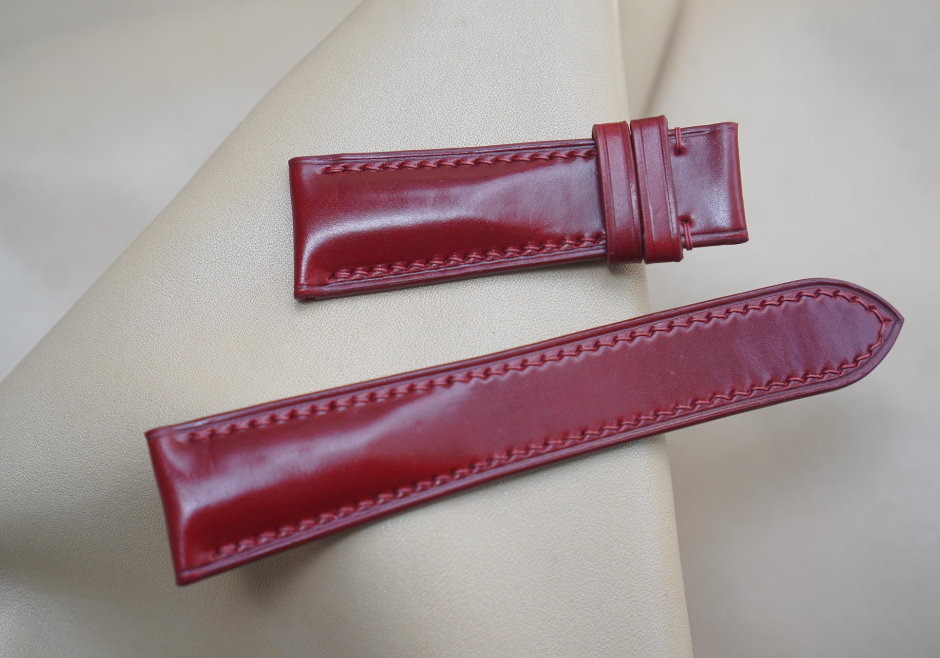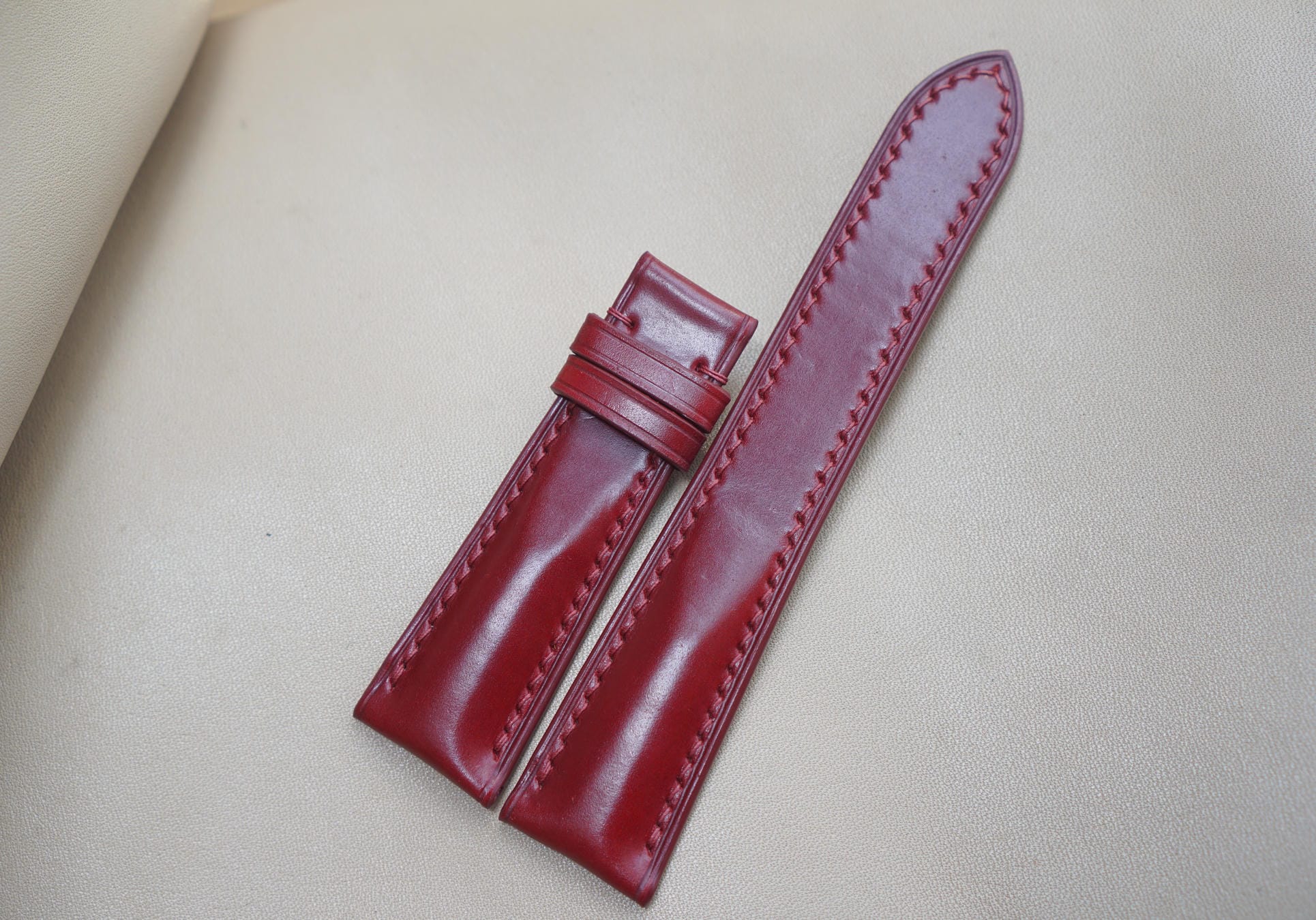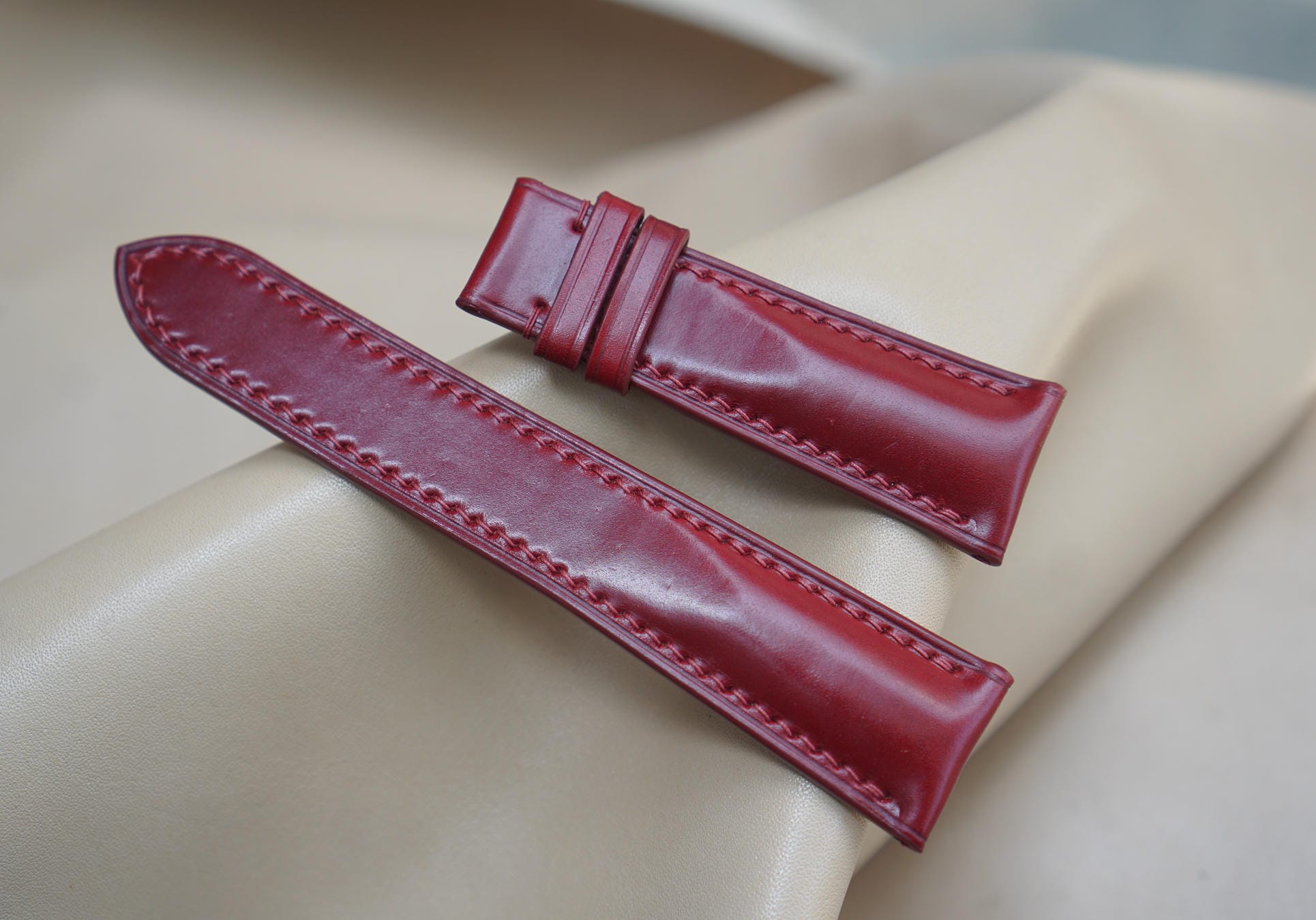 Hãy là người đầu tiên nhận xét “Dây đồng hồ Handmade da Shell Cordovan màu đỏ DS5009”